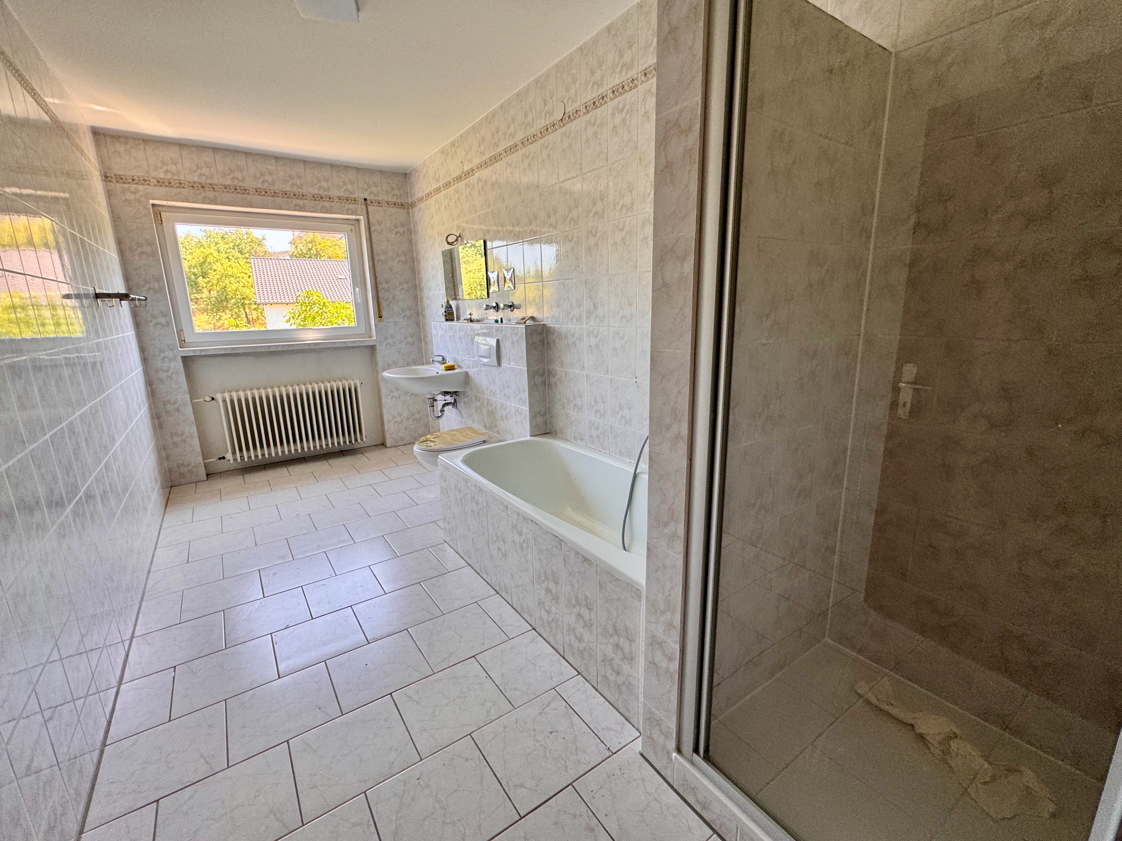 - Ausstattung des Bades Badewanne, Fenster, Dusche